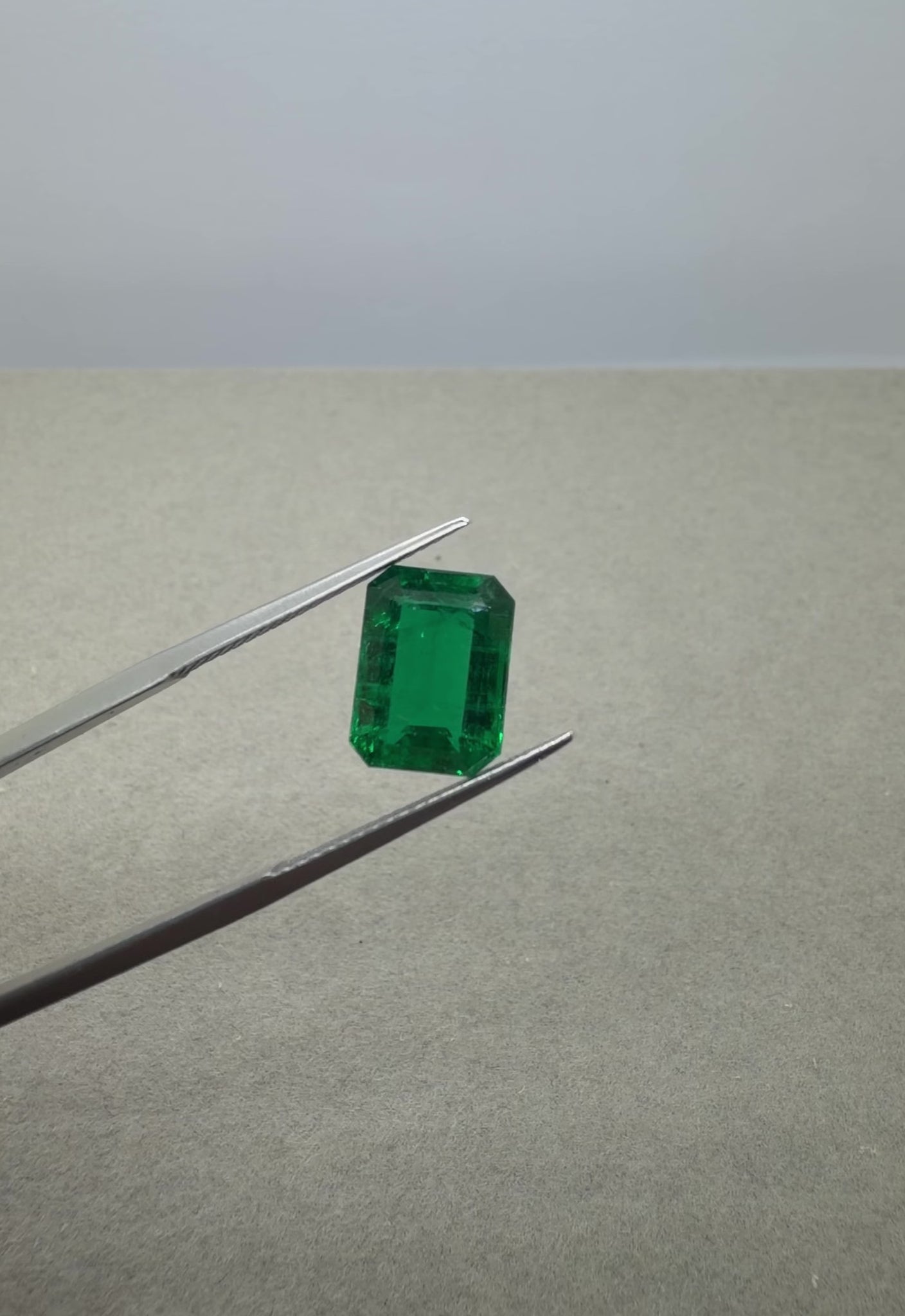 Zambian natural emerald certified by GRS Laboratory, vivid green, insignificant oil clarity enhancement (CE(O): Insignificant)