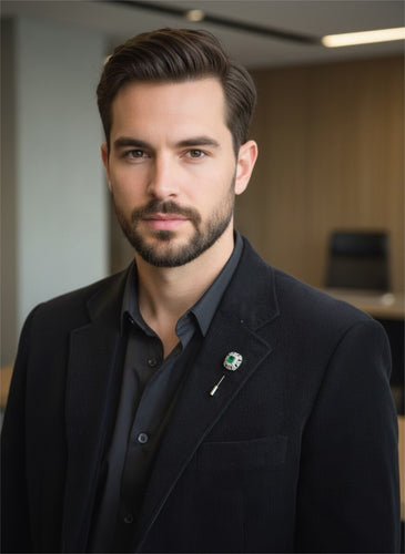 • Crafter's-made Men's Emerald & Diamond Brooch