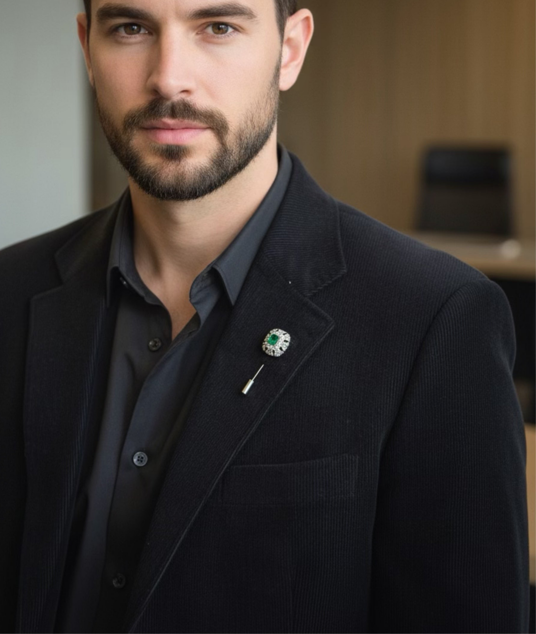 Crafter's-made Men's Emerald & Diamond Brooch