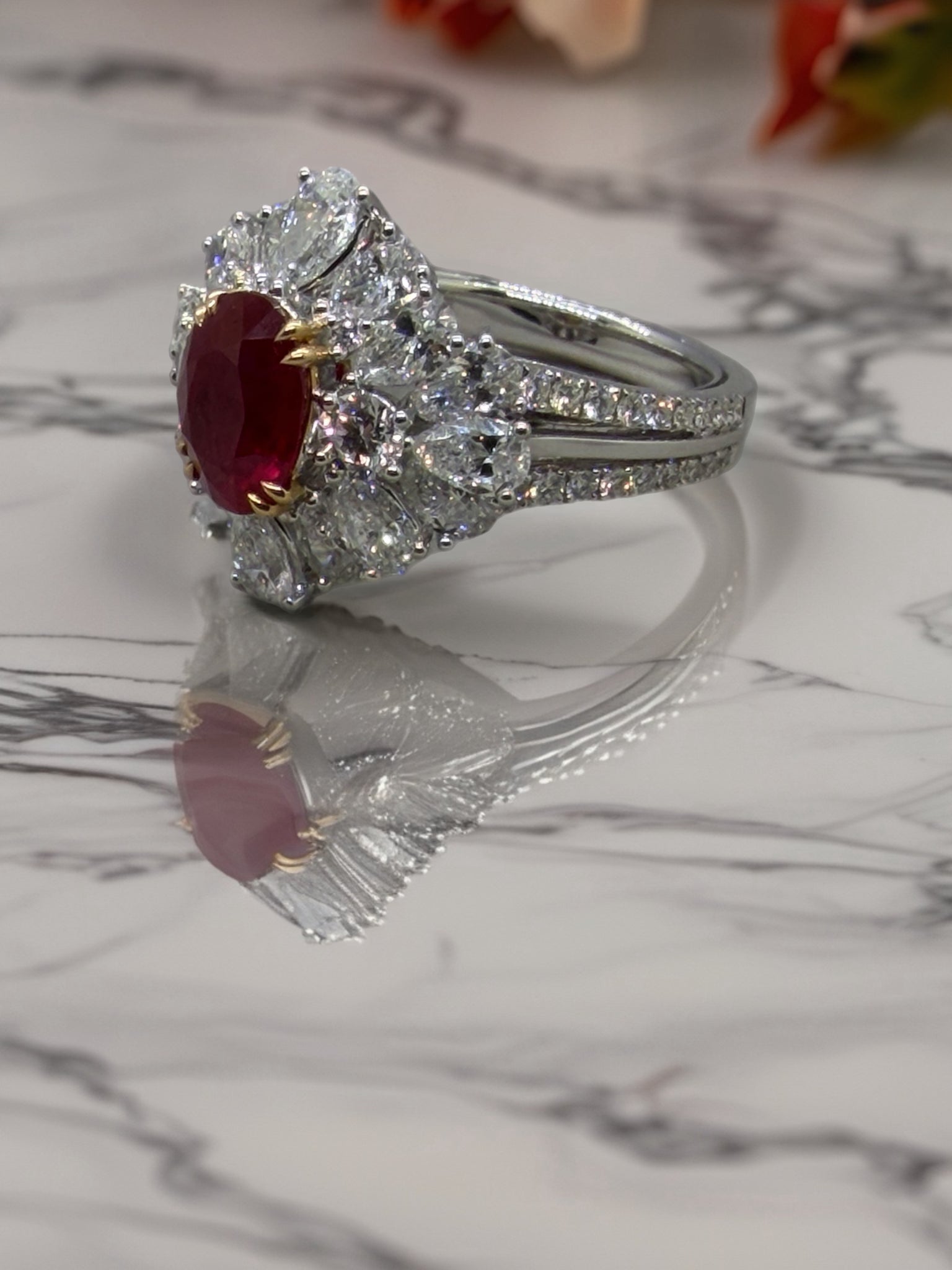 Burmese ruby oval shape 1.92cts certified by GRS, with thermal treatment [H(a)], Burma origin, vivid red (GRS type “pigeon blood”)